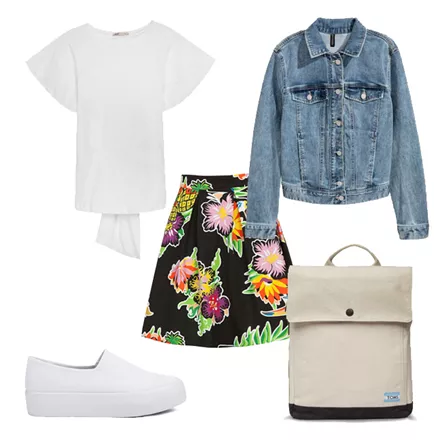 Μπλούζα, BSB, 29,90 ευρώ, bsbfashion.comΦούστα, BSB, 59,90 ευρώ, bsbfashion.comSneaker, Migato, από 37,00 τώρα 27,00 ευρώ, migato.com Jacket, H&M, 39,99 ευρώ, hm.comBackpack, TOMS, 80,00 ευρώ, sagiakos.gr