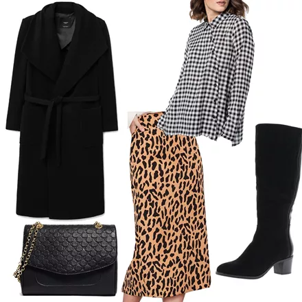 Καρό πουκάμισο Helmi, 39,90 ευρώ, helmi.grMidi φούστα Diane Von Furstenberg, 198,40 ευρώ, atticadps.grΜπότες IQ shoes, 26,90 ευρώ, iqshoes.grΜάυρη τσάντα ώμου Migato, 39,00 ευρώ, migato.comΠαλτό με ζώνη Mango, 99,99 ευρώ, mango.com