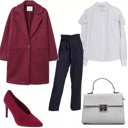 Παντελόνι ψηλόμεσο Helmi, 47,90 ευρώ, helmi.grΡιγέ πουκάμισο BSB, 27,45 ευρώ, bsbfashion.comΜοχέρ παλτό Mango, 59,99 ευρώ, mango.comΓόβες κλειστές IQshoes, 19,90 ευρώ, iqshoes.grΤσάντα καπιτονέ Bozikis, 24,99 ευρώ, bozikis.gr