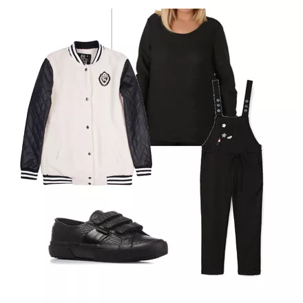 Σαλοπέτα με διακοσμητικά μπαλώματα, Mango, 19,99€, www.mango.comBomber τζάκετ, BSB, 83,90€, www.bsbfashion.comΜαύρη μπλούζα, Parabita, 25,00€, www.parabita.comSneakers, Verona Shoes, 47,99€, www.verona-shoes.gr