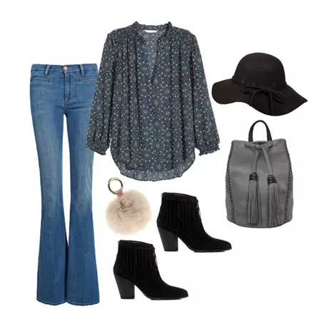 Toπ, Η&Μ, 19,99 ευρώ, www.hm.com/grDenim παντελόνι καμπάνα, M.i.h Jeans, 272,30 ευρώ, www.graziashop.comAnkle boots με κρόσια, Nak Shoes, 89,50 ευρώ, www.nak.grBackpack, Callista Crafts, 365,00 ευρώ, www.aesthet.comKαπέλο, Achilleas Accessories, 14,45 ευρώ, www.achilleasaccessories.grMπρελόκ για τα κλειδιά, Iphoria, 20,00 ευρώ, www.stylebubbles.com