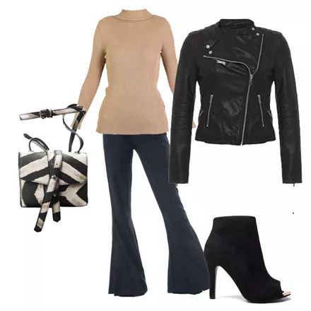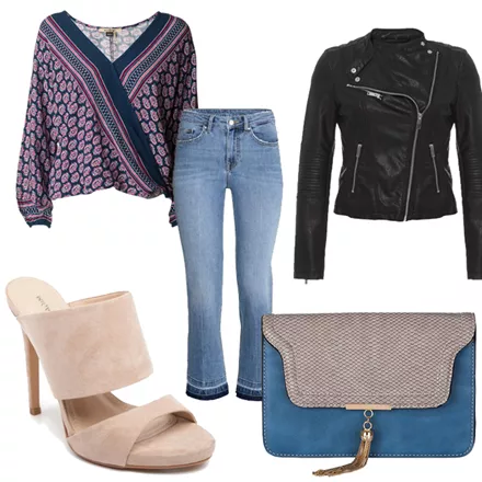 Cropped καμπάνα H&M, 29,99 ευρώ, hm.com/grΤουνίκ κρουαζέ attrattivo, 59,90 ευρώ, store.attrattivo.grΜπεζ σουέντ mules Migato, 60,00 ευρώ, migato.comΤσαντάκι με αλυσίδα Achilleas Accessories, 16,45 ευρώ από 32,90 ευρώ, achilleasaccessories.grBiker jacket Pink Woman, 49,99 ευρώ, pinkwoman-fashion.com