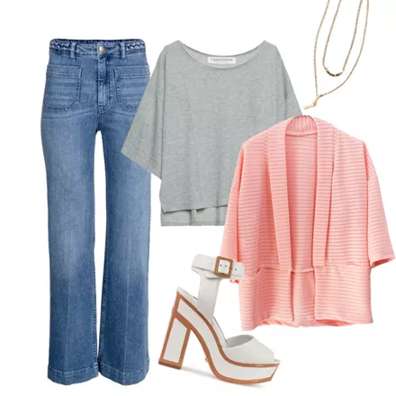 Flared High Jeans, H&M, 39.99 ευρώ, www.hm.comSweater με μανίκι 3/4 Ripped Cotton, από 54.00 ευρώ, τώρα 32.40 ευρώ, www.stylebubbles.comΣακάκι με τσέπες, Macadamia, 24.90 ευρώ, www.macadamiafashion.comΠλατφόρμες Kat Maconie, 192.60 ευρώ, www.graziashop.comΚολιέ ασυλίδα με χάντρες και πέτρες, Attrattivo, 19.90 ευρώ, store.attrattivo.gr