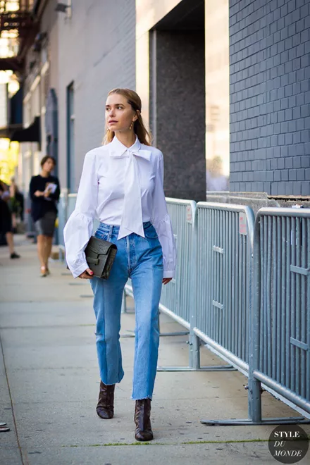 Η Pernille Teisbaek επαναπροσδιορίζει τον κλασικό συνδυασμό denim - λευκό πουκάμισο. Φωτογραφία: Style Du Monde