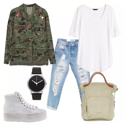 Τοπ, H&M, 9,99 ευρώ, hm.comSneakers, Jeffrey Campbell, 85,00 ευρώ, favela.grJean, Macadamia, 29,90 ευρώ, macadamiafashion.comΡολόι, Normal Timepieces, 190,00 ευρώ, designisthis.comΤσάντα, Axel, 78,00 ευρώ, axelaccessories.comΤζάκετ, BSB, 99,00 ευρώ, bsbfashion.com