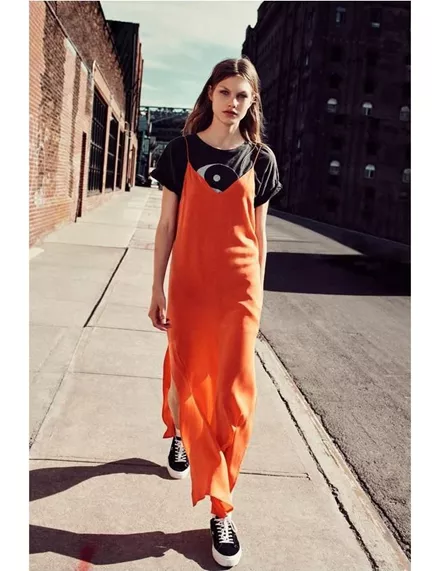 Φόρεσε το slip dress πάνω από ένα T-shirt. Αυτό το look "φωνάζει" 90s και τα 90s είναι ακόμα τόσο hot φέτος!