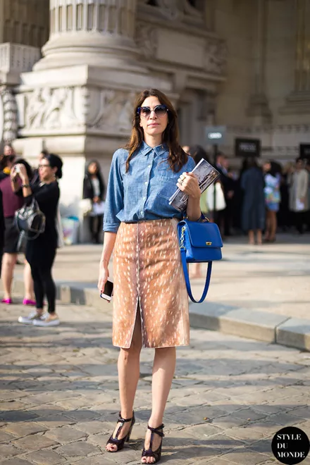 Η απόλυτη pencil φούστα έχει animal print μοτίβο που συνδυάζεται τέλεια με ένα χαλαρό μεταξωτό πουκάμισο.