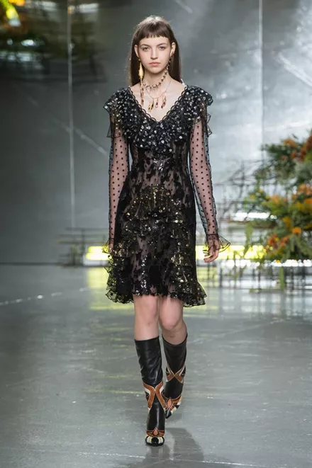 Για τον οίκο Rodarte, και τη σεζόν Άνοιξη/ Καλοκαίρι 2017, οι πάντα πρωτοπόρες αδερφές Mulleavy παρουσίασαν μία συλλογή που μοιάζει βγαλμένη από την ντουλάπα μιας σύγχρονης... ξεπεσμένης πριγκίπισσα. Τα λαμέ μοτίβα, το τούλι και οι τονισμένοι ώμοι μοιάζουν βγαλμένα από την πιο πληθωρική δεκαετία μέχρι στιγμής, τα 80s, που γνωρίζουν μεγάλη άνοδο φέτος! Τα πολλά βραχιόλια και σκουλαρίκια, τα τεράστια σκουλαρίκια αλλά και τα περίτεχνα κοσμήματα για τα μαλλιά υποδηλώνουν πως το maximal ήρθε για να μείνει!