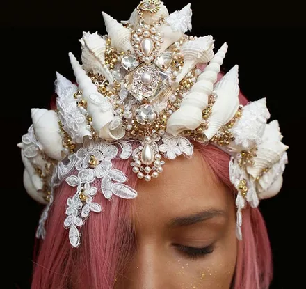 Η Chelsea συνδυάζει αληθινά κοχύλια που βρίσκει στην παραλία, με πέτρες, αλυσίδες, χρώματα, δαντέλα και πολλά άλλα διακοσμητικά και δημιουργεί μεγαλοπρεπή στέμματα που μεταμορφώνουν κάθε κορίτσι σε... πριγκίπισσα της θάλασσας!