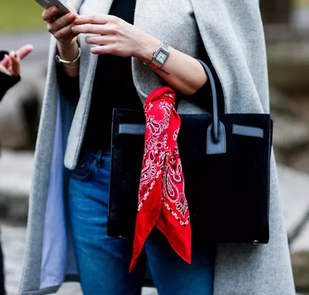 Χάρισε νέα πνοή στην αγαπημένη σου τσάντα δένοντας ένα πολύχρωμο μαντήλι στο χερούλι της.