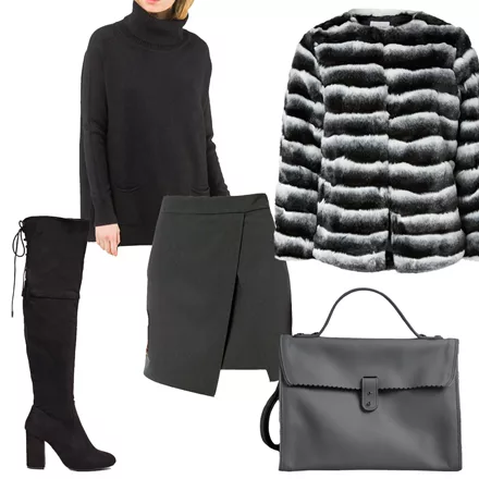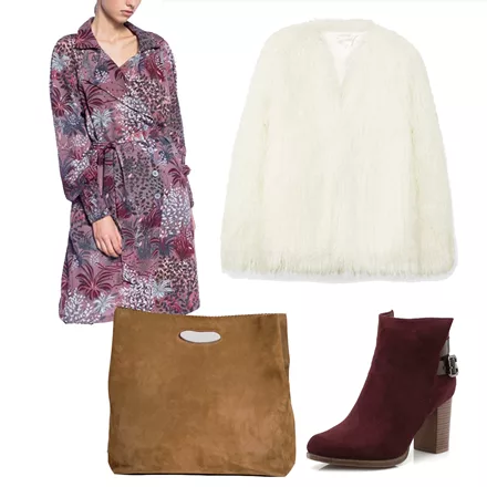 Γούνα δίχρωμη Parabita, 85,00 ευρώ, parabita.comΤσάντα δερμάτινη Rien by Penny Vomva, 560,00 ευρώ, rien.grΣουέντ μπότες Migato, 70,00 ευρώ, migato.comΦούστα μίνι Helmi, 44,90 ευρώ, helmi.grΠουλόβερ μακρύ attrattivo, 59,90 ευρώ, attrattivo.gr