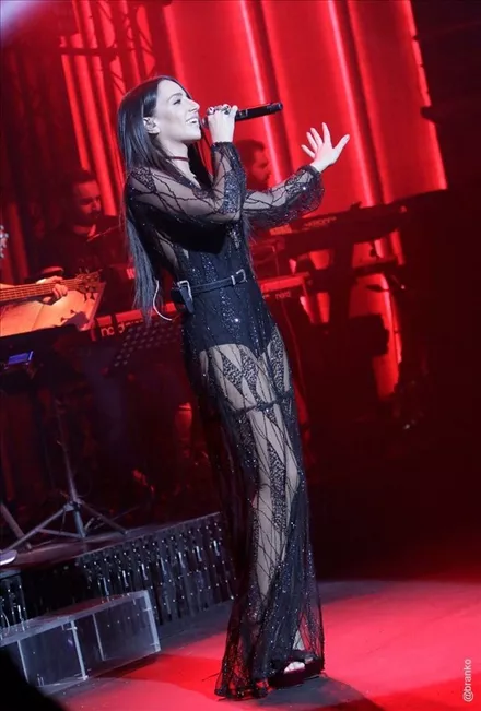 Οι χειμερινές εμφανίσεις της Μαλού στο Acro, στο πλευρό του Γιώργου Σαμπάνη, παρέα με τη Demy, αναδεικνύουν μια ακόμα πτυχή της πολύπλευρης προσωπικότητάς της. Από δροσερό bohemian κορίτσι μεταμορφώνεται αυτή τη σεζόν σε μια σύγχρονη femme fatale φορώντας δύο δημιουργίες που σχεδίασαν αποκλειστικά για εκείνη οι Μi-Ro. Ένα αισθησιακό φόρεμα από μαύρη διαφάνεια, περίτεχνα κεντήματα και λεπτομέρειες από κρύσταλλα συνθέτει το look της πρώτης εμφάνισης, ενώ το δεύτερο outfit παραπέμπει στα glamorous 70s και στην ντίσκο αισθητική του Studio 54 με silver metallic ψηλόμεση καμπάνα και διάφανο cropped top με κεντήματα.