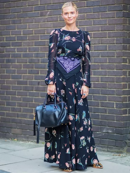 Μάξι, φλοράλ φόρεμα. Miss Bloom's Tip: Προφανώς, συνδυάζεται με ankle boots.
