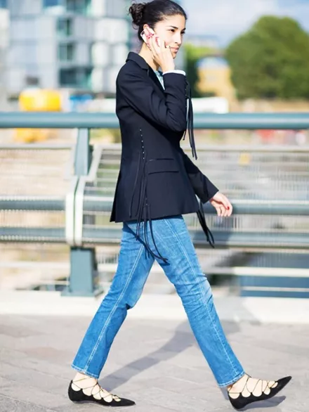 Βlazer, skinny denim και «έξυπνα» flats. Miss Bloom's Tip: Εννοείται, μιλάμε για lace-up flats.