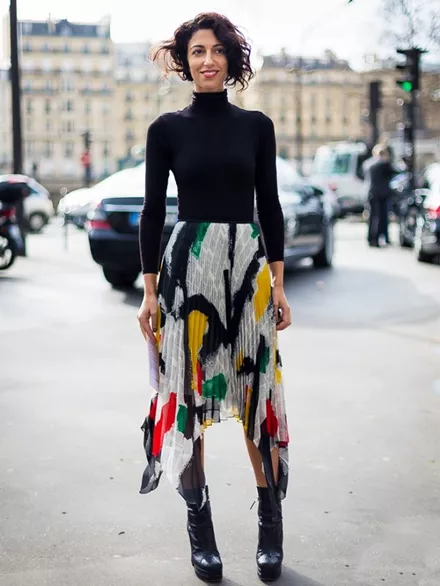 Μαύρο ζιβάγκο και midi φούστα. Miss Bloom's Tip: Προτίμησε, ιδανικά, μία φούστα με ζωηρό μοτίβο.
