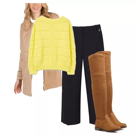 Πουλόβερ, 29.99 ευρώ, shop.mango.comΜπότες, 15 ευρώ, www.bozikis.grΖιπ κιλότ, 59.90 ευρώ, www.bsbfashion.comΣουέντ πανωφόρι, 59.99 ευρώ, www.fullahsugah.gr