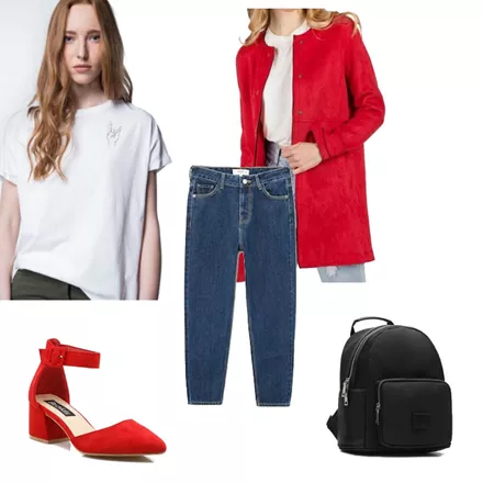 T-Shirt, Helmi, 24.90€, www.helmi.grΤζιν Mom, Mango, 29.99€, shop.mango.comΠαλτό με στροφφυλή λαιμόκομψη, Fullah Sugah, 59.99€, www.fullahsugah.grSuede μυτερές γόβες, Bozikis, 19.99€, www.bozikis.grΜίνι σακίδιο πόλης, Pull&Bear, 25.99€, www.pullandbear.com