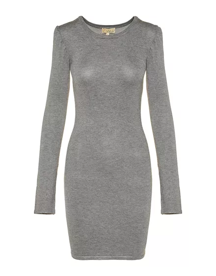 Μίνι, πλεκτό φόρεμα με διακριτικό βολάν στους ώμους.