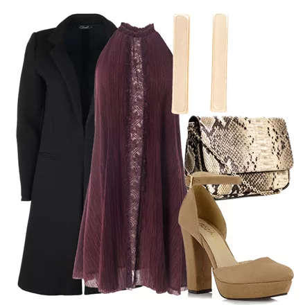 Παπούτσια, ΒΟΖΙΚΙS, 39.99 ευρώ, www.bozikis.grΦόρεμα, Attrattivo, 79.90 ευρώ, www.attrattivo.grΠανωφόρι, Axel Accessories, 79 ευρώ, www.axelaccessories.comΣκουλαρίκια, Pink Woman, 5.99 ευρώ, pinkwoman-fashion.comΤσάντα, H&M, 14.99 ευρώ, www2.hm.com