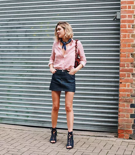 Η Adenorah συνδύασε denim μίνι φούστα και κόκκινο ριγέ πουκάμισο σε ένα look πολύ...παριζιάνικο και πολύ φρέσκο!