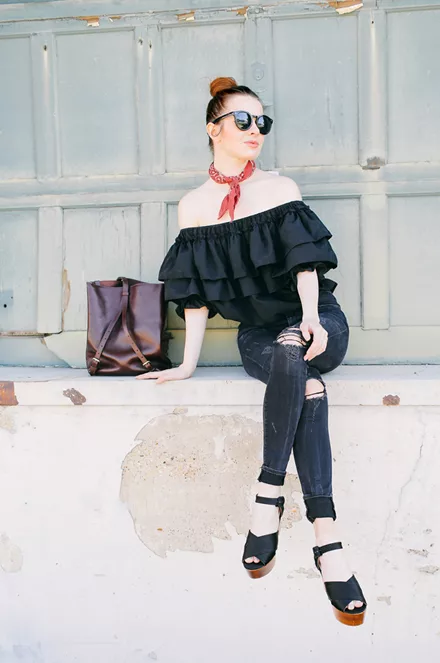 H Jane (Sea of Shoes) συνδυάζει skinny τζιν με έξωμο τοπ με έντονα βολάν, μπαντάνα στο λαιμό και πλατφόρμες. Θα υιοθετήσουμε κι εμείς όλα όσα θυμίζουν... Mexico και Βραζιλία καθώς απο εκεί προέρχονται οι περισσότερες τάσεις της σεζόν.
