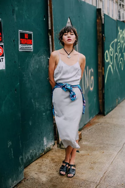 Η Natalie (Natalie Off Duty) μας θυμίζει πως τα 90s είναι ακόμα in φορώντας slip dress και καρό πουκάμισο δεμένο στη μέση. Το πρώτο είναι σίγουρα ένα από τα βασικά items της σεζόν!