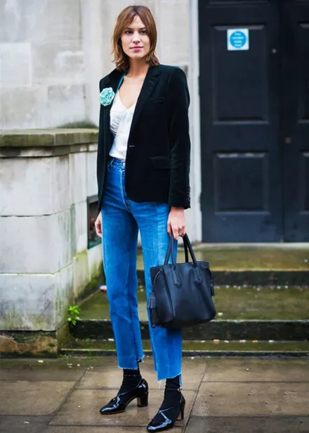 Αισθησιακές υφές όπως δαντέλα και βελούδο εξισορροπούν το «σκληρό» denim. Η Alexa Chung γνωρίζει καλά πως να πετύχει μία super θηλυκή εμφάνιση.Φωτογραφία: Style Du Monde