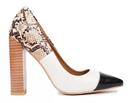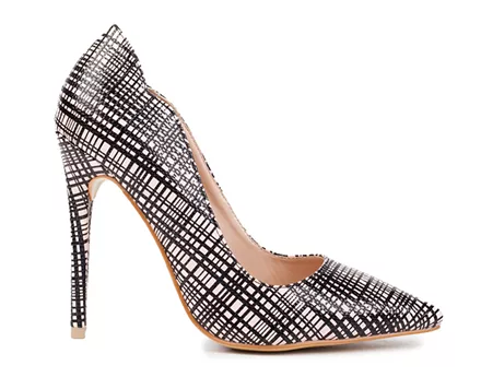 Η Φλορίντα Πετρουτσέλι επέλεξε ασπρόμαυρη γόβα με γεωμετρικό σχέδιο.