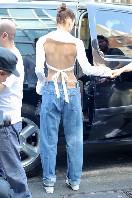 Σε πρόσφατη εμφάνιση της εντοπίσαμε το πιο... συναρπαστικό crop top που έχουμε δει τελευταία. Γιατί; Από τη μία, το μπροστινό μέρος θύμιζε πουκάμισο και είχε μακριά και oversized μανίκια, ενώ το πίσω μέρος μας άφησε με το στόμα ανοιχτό και τη Bella με εντελώς εκτεθειμένη πλάτη, αφού έδενε με ένα μοναδικό strap. Το look της έγινε πιο cool, αφού κατάφερε να εξισορροπήσει το τολμηρό crop top με ένα oversized τζιν παντελόνι και sneakers.