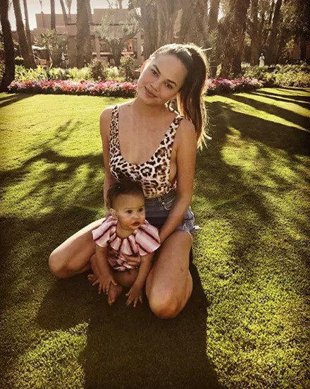 Η Chrissy Teigen και η κόρη της Luna με ολόσωμα μαγιό με avocado print