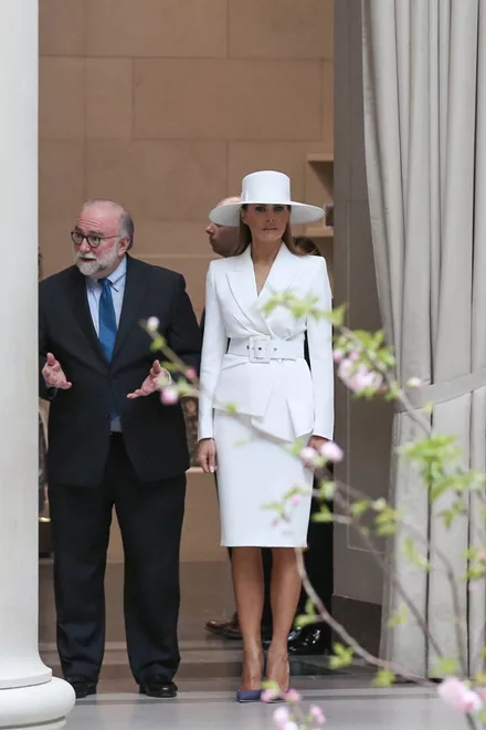 Η εμφάνιση της Melania Trump κατέπληξε για μία ακόμα φορά τα πλήθη και... κυρίως το ανδρικό κοινό, αφού το λευκό ταγιέρ δια χειρός Michael Kors που επέλεξε τόνιζε ιδανικά το άψογο κορμί της.