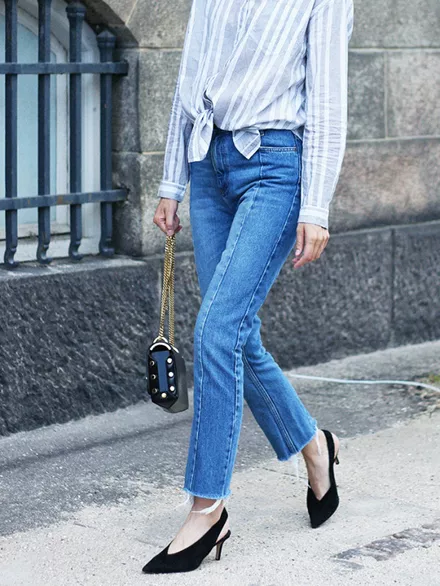 Αν επιλέξεις ένα κοντό παντελόνι, φρόντισε οι αστράγαλοι σου να είναι εκτεθειμένοι. Ένα statement ζευγάρι ψηλοτάκουνα παπούτσια «αναβαθμίζει» κάθε basic εμφάνιση.
