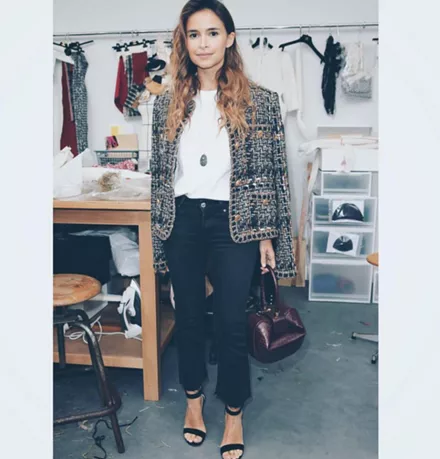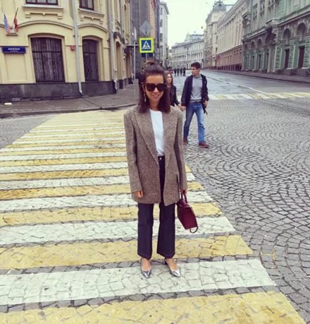 Είτε σε μονοχρωμία είτε με prints, ένα total look θα σε κάνει να φαίνεσαι ψηλότερη. Case in point, η εμφάνιση της Natasha Goldenberg. Φωτογραφία: Style du Monde.