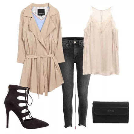 Καπαρντίνα, BSB, 99,90 ευρώ, bsbfashion.comΤοπ, H&M, 19,99 ευρώ, hm.comΤζην, H&M, 39,99 ευρώ, hm.comΓόβα, Migato, από 60,00 τώρα 40,00 ευρώ, migato.comΤσάντα, Axel, ap;o 48,00 τώρα 24,00 ευρώ, axelaccessories.com