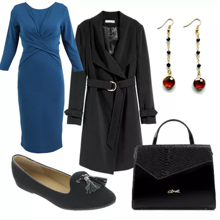 Κρεπ μίντι φόρεμα e-xclusive, 20 ευρώ, e-xclusive.comΜπαλαρίνα με φούντες IQ shoes, 9,90 ευρώ, iqshoes.grΠαλτό με ζώνη H&M, 59,99 ευρώ, hm.comΤσάντα Axel, 37,50 ευρώ, axelaccessories.comΣκουλαρίκια Comme chat, 11,20 ευρώ, jamjar.gr