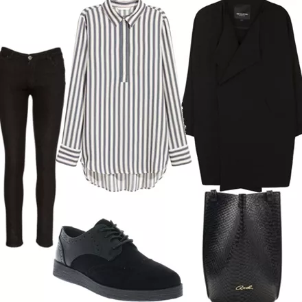Πανωφόρι με τσέπες, BSB, 79,90 ευρώ, bsbfashion.comΠουκάμισο με ρίγες, H&M, 29,99 ευρώ, hm.comΠαντελόνι, Pink Woman, 19.99 ευρώ, pinkwoman-fashion.comΠαπούτσια, Iqshoes, 29,90 ευρώ, iqshoes.grΤσάντα σε πρωτότυπο σχέδιο, Axel, 30,00 ευρώ, axelaccessories.com