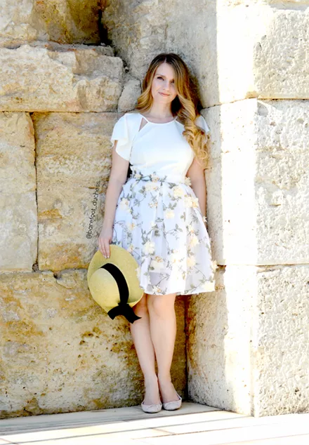Η Φιλιώ (All You Need Is Style) επέλεξε το κλασικό λευκό φόρεμα του καλοκαιριού, με εντυπωσιακά βολάν.