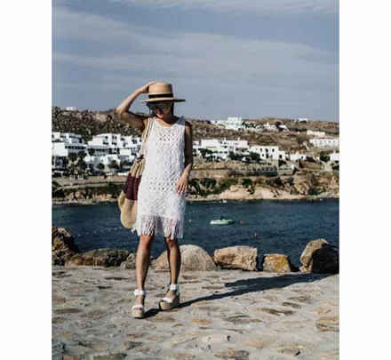 Η Camille Chariere εμπνεύστηκε μάλλον από την δεκαετία του 60 στα ελληνικά νησιά για το μυκονιάτικο look της!