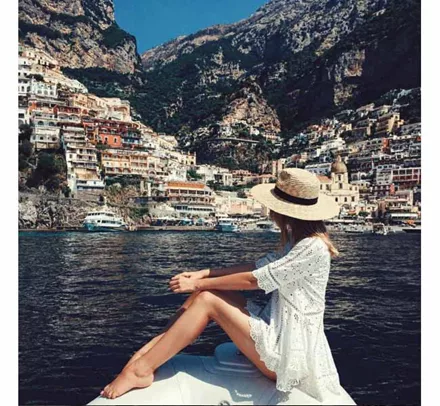 Με λευκό μπροντερί φόρεμα απόλαυσε η Jessica τις ακτές του Positano.
