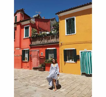 Με τα χρώματα του Burano ταίριαξε η Aimee Song.