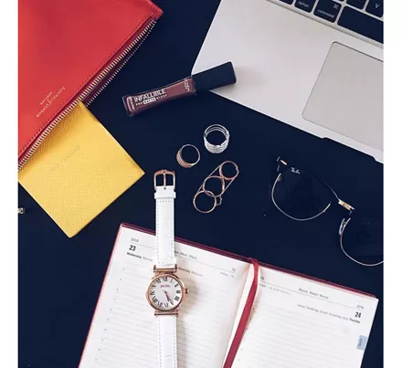 Το λευκό ρολόι Obsession και τα δαχτυλίδια της σειράς Fashionably Silver που διάλεξε η Ναταλία