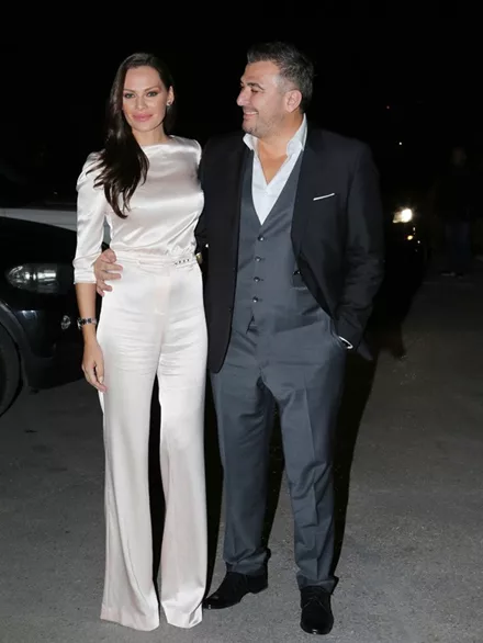 Η Όλγα Λαφαζάνη στη βάφτιση του δεύτερου παιδιού της με κομψό λευκό φόρεμα.