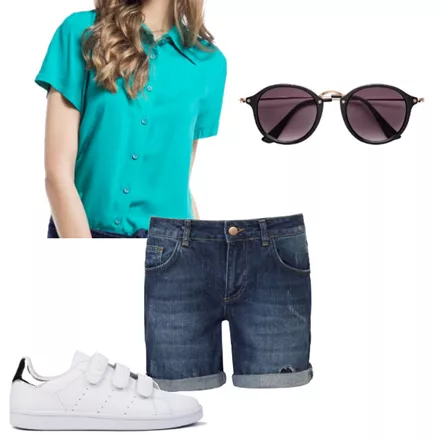 Denim βερμούδα, BSB, 34,90 ευρώ, www.bsbfashion.comΠουκάμισο με κοντό μανίκι, Helmi, 27,93 ευρώ, www.helmi.grΛευκά sneakers, Migato, 25,00 ευρώ, www.migato.comΓυαλιά ηλίου, H&M, 7,99 ευρώ, www.hm.com