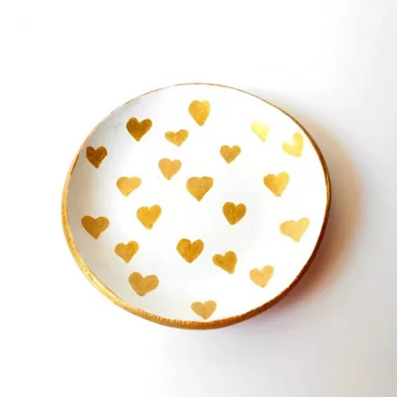 Χειροποίητο πιάτο με χρυσές καρδούλες, jamjar.gr, 12 ευρώ