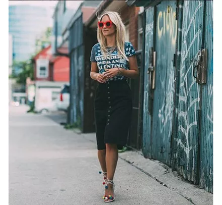 Η denim midi φούστα είναι βασικό κομμάτι της σεζόν. Συνδύασέ τη με ένα cool t-shirt για τέλειο look!