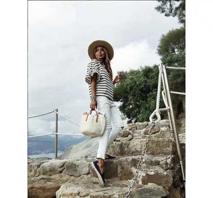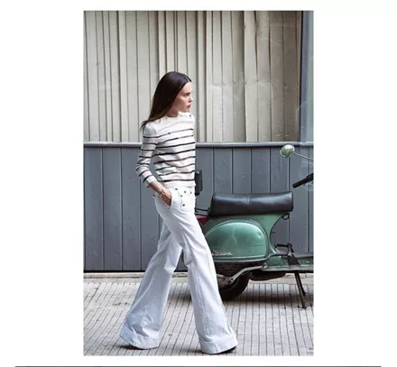 Το λευκό τζιν είναι διαχρονικό κομμάτι πόσο μάλλον όταν συνδυάζεται με μια μοντέρνα εκδοχή της μαρινιέρας.
