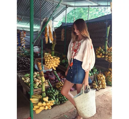 Το τοπ με τα ethnic κεντήματα και τα μεγάλα μανίκια δίνει άλλο στυλ στην denim φούστα.