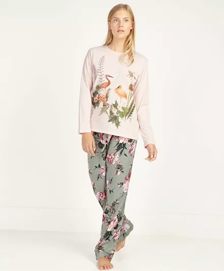 Πυτζάμες με print πουλιά Oysho