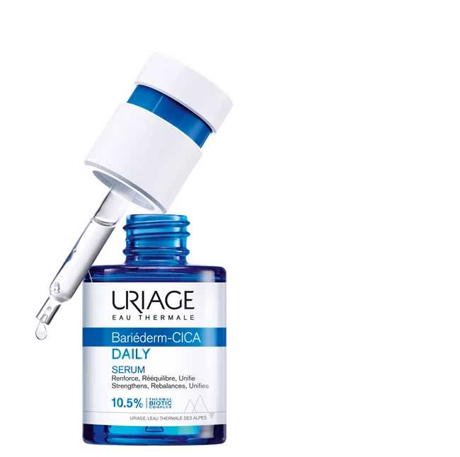 Tο Bariéderm-Cica DAILY Serum προσφέρει μια φρέσκια και εξαιρετικά ρευστή υφή. Χωρίς άρωμα και μη κολλώδες, διεισδύει αμέσως στο δέρμα, επιτρέποντας καθημερινή χρήση σε ολόκληρο το πρόσωπο. Η υψηλή ανοχή του το κάνει κατάλληλο για όλους τους τύπους δέρματος και παρέχει την απόλυτη άνεση για δέρμα που αισθάνεται σφιχτό και άβολο. H φόρμουλά του αποτελείται από 10,5% Thermal-Biotic σύμπλοκο, συμπεριλαμβανομένου του ιαματικού νερού Uriage και των πρεβιοτικών που εξισορροπούν το επιδερμικό φραγμό. Είναι επίσης εμπλουτισμένο με Centelia Asiatica και υαλουρονικό οξύ υψηλού και χαμηλού μοριακού βάρους για να φτάσει σε όλα τα στρώματα της επιδερμίδας.