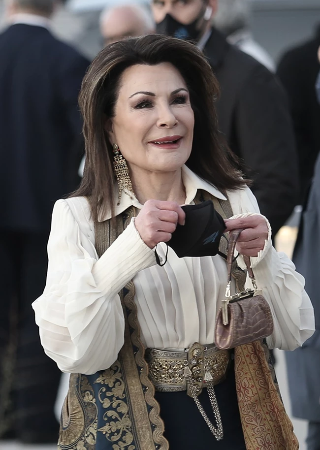 Η Γιάννα Αγγελοπούλου έκανε δύο πραγματικά εντυπωσιακές εμφανίσεις: Στο χθεσινό δείπνο στο Προεδρικό Μέγαρο φόρεσε ένα παραδοσιακό "πιρπιρί ", όπως ονομάζεται το μακρύ γιλέκο με τα κεντήματα το οποίο δανείστηκε από το μουσείο του Λυκείου Ελληνίδων και περίτεχνη ζώνη με την ασημένια πόρπη –έργο Ιωαννιτών τεχνιτών. Σήμερα στην παρέλαση συνδύασε μια σύγχρονη πλισέ φόρμα σε σκούρο μπλε χρώμα με ένα εντυπωσιακό κεντημένο μάλλινο γιλέκο.